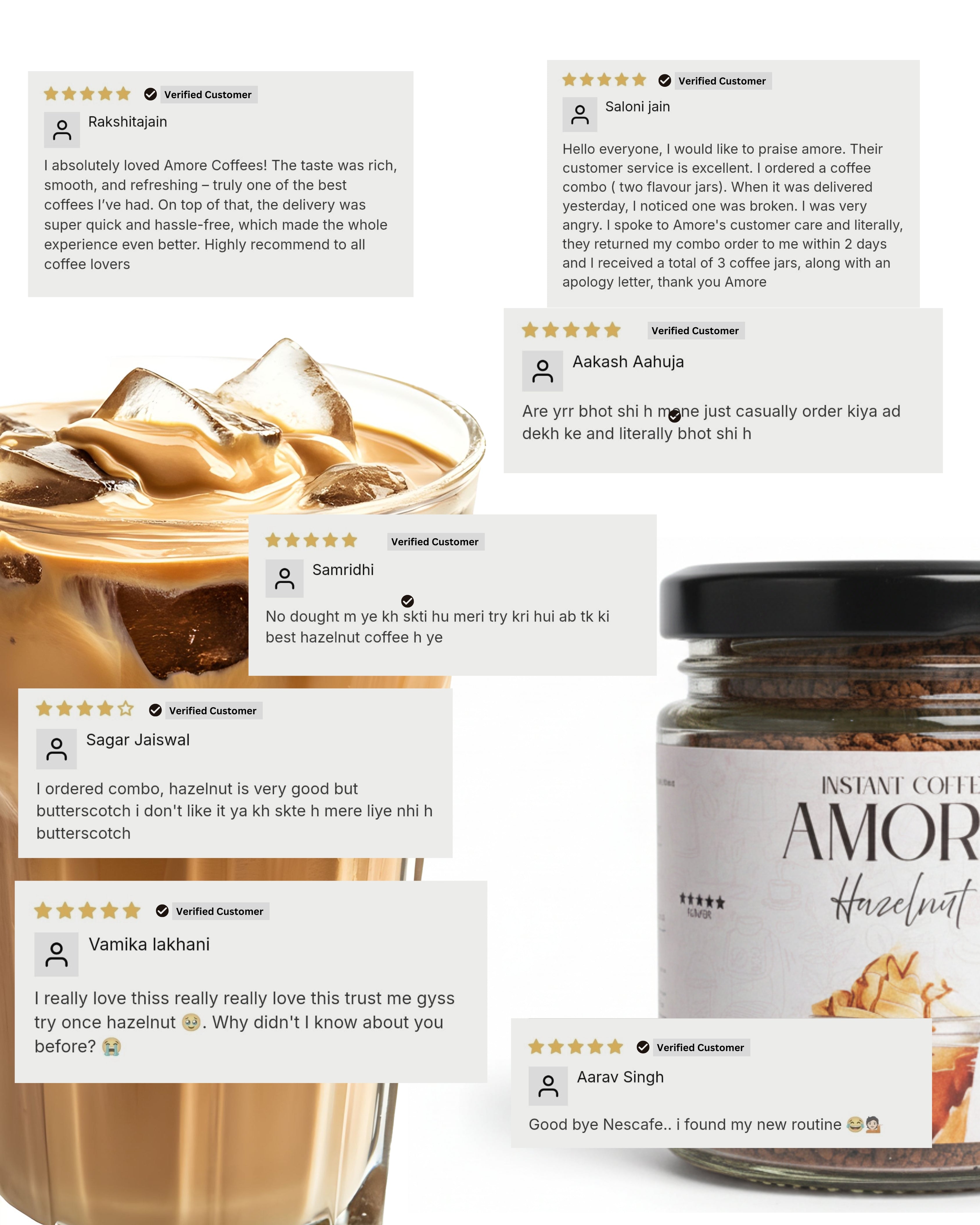 "Join our growing family of 7,000+ happy coffee lovers who trust Amore Coffees for their daily brew. Customers love us for our café-like flavored instant coffee that’s rich, smooth, and full of premium taste."